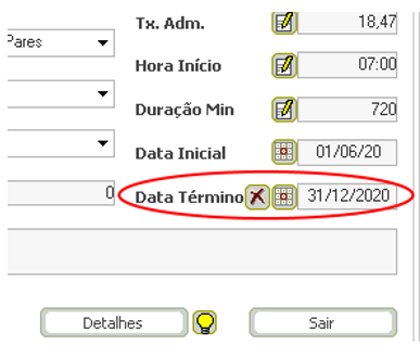 Se o campo Data Término estiver em branco, os profissionais serão agendados para o período em curso; porém, estando definida a Data Término, o agendamento será efetuado até a data ali definida.