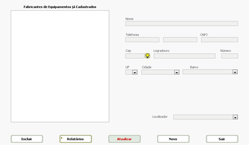 Nesse menu, além das operações básicas de um cadastro, também é possível gerar relatórios baseados no fabricante selecionado ou em todos os fabricantes cadastrados.