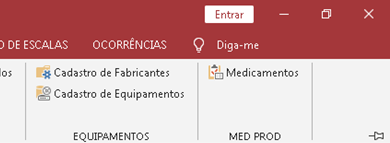 Esses menus são acessados através da guia “Cadastros”, nos itens “Cadastro de fabricante” e “Cadastro de equipamento”: