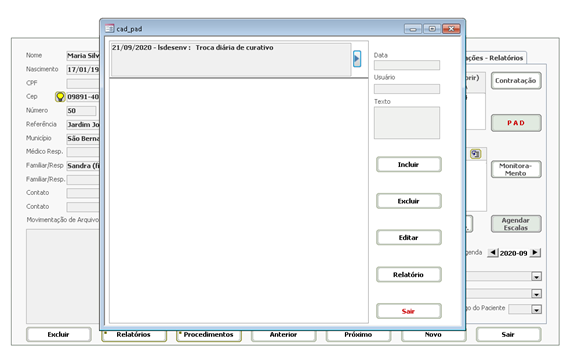 No Sincro-Saúde, é possível agora anotações sobre o PAD do paciente.