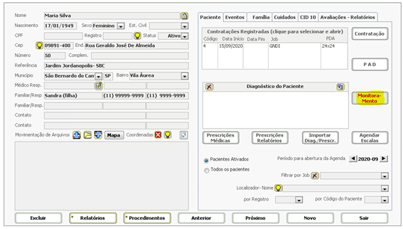 A empresa constantemente monitora a situação do paciente em casa, as anotações desse monitoramento pode ser realizado no cadastro do paciente.