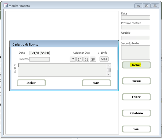 Além das anotações, pode ser definida a data do próximo monitoramento.