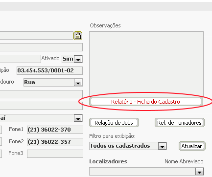 Para atender a essa necessidade foi criado um novo relatório que será acessado diretamente no Cadastro Geral, através de um comando situado abaixo do campo ‘Observações’, conforme abaixo sinalizado.