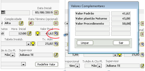 Ao clicar no comando será exibida uma pequena tela que servirá de memória para valores alternativos que eventualmente poderão ser utilizados no agendamento dos plantões.