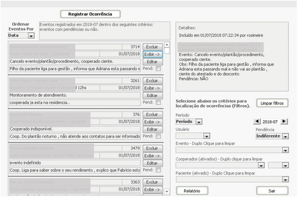 O recurso de Registro de Ocorrências estava limitado aos usuários do sistema Sincro-Saúde, porém, ao verificarmos que poderia ser muito útil a vários usuários do Sincro-Coop, decidiu-se incorporá-lo também a esse sistema.